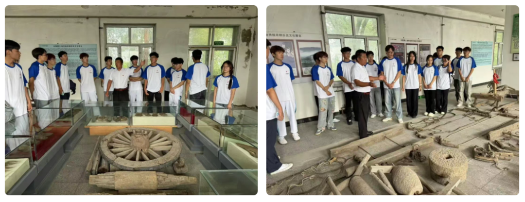 走进中国黑土地传统农耕历史文化展馆,展厅中陈列了许多老旧的农具器物。黄彦辉为服务队成员讲解不同时期黑土地上的农耕生产画面,涵盖耕地、除草、秋收等关键环节,清晰呈现了传统农业生产的完整流程,让服务队成员得以直观感受当时的生活状态。